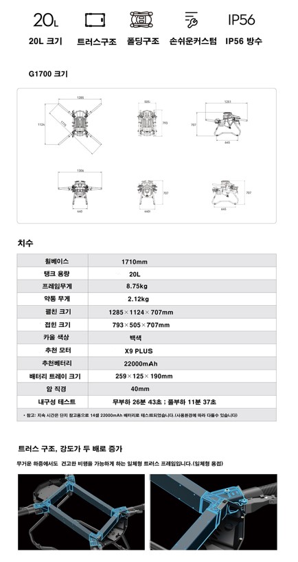 농업용 드론 EFT사 G1700 드론을 소개합니다.